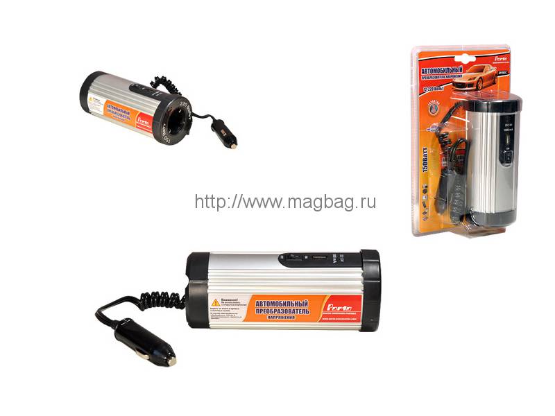 Подключается к прикуривателю или генератору автомобиля и позволяет подключить: ноутбук,